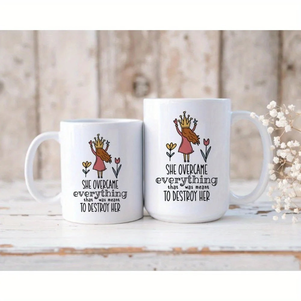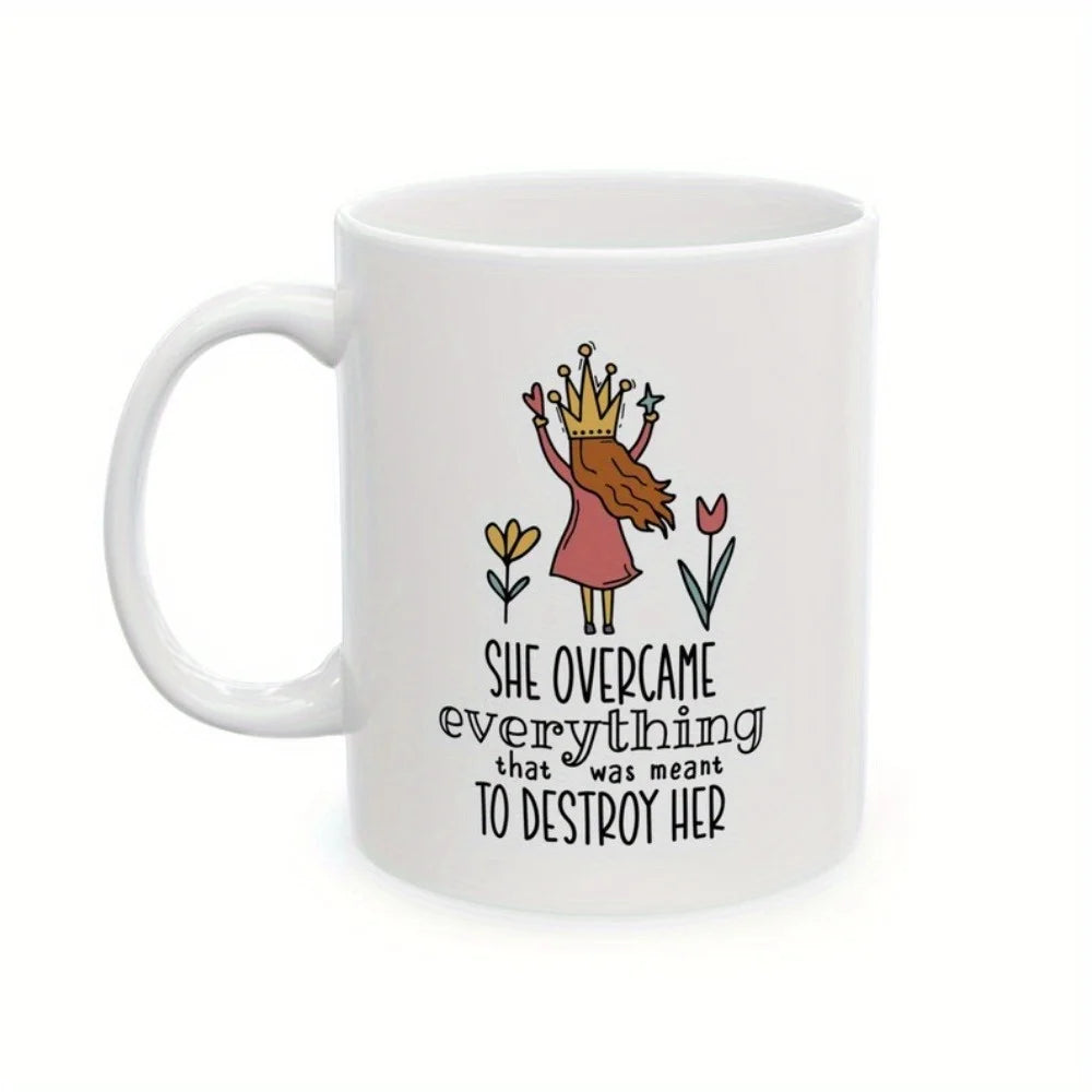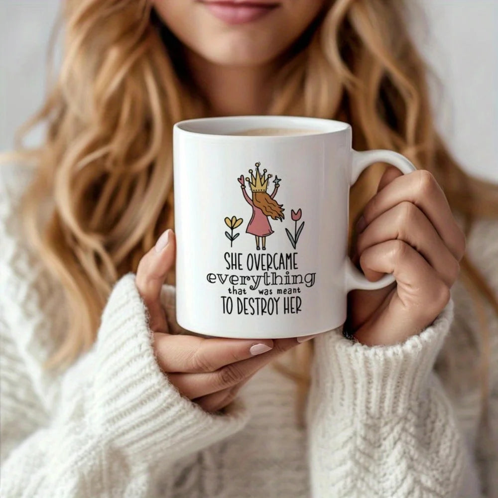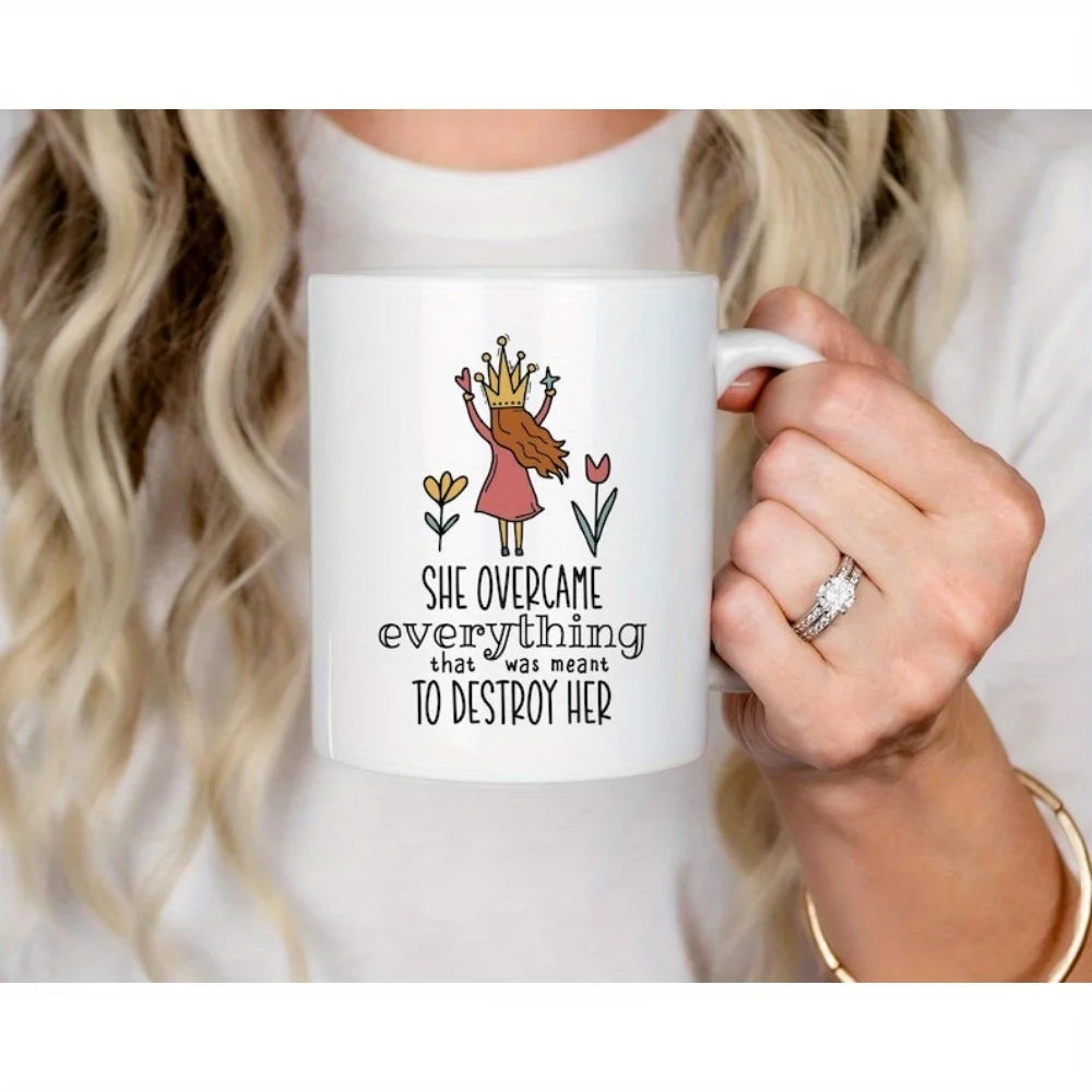 1pc 11oz Inspirational Mug for Women – "She Overcame Everything to Destroy Her" Empowering Quote, Perfect Gift for Boss, Best Fr