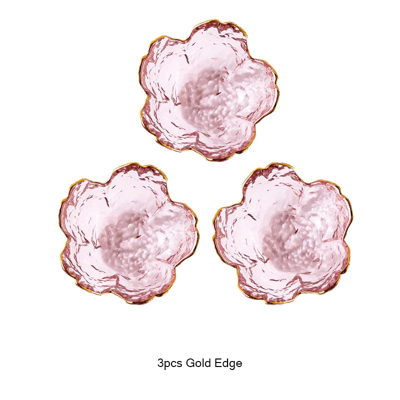 3pcs Cherry Blossom Sauce Dishes Small Glass Dish Sauce Bowl Nodic Gold Inlay Ice Cream Small Dinner Plates Kitchen Supplies
