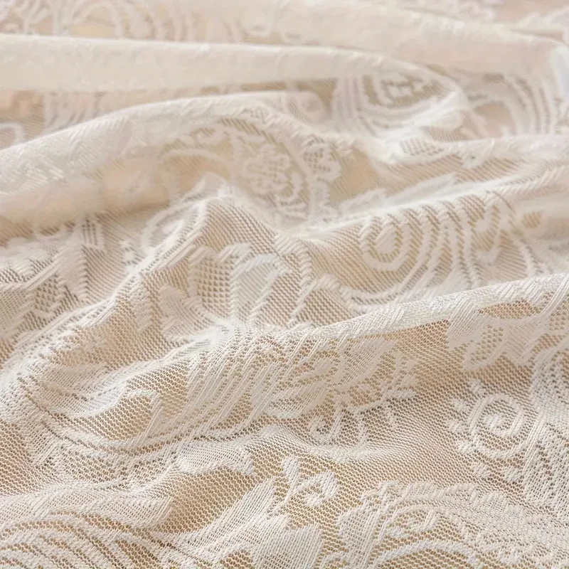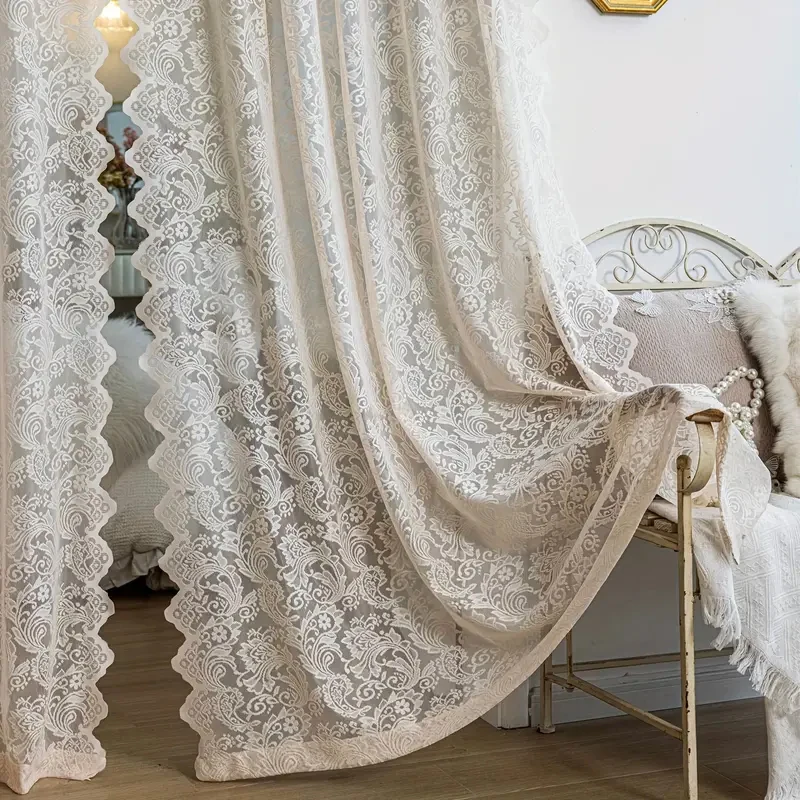 A Classic Light Yellow Lace Embroidered Curtains, Customized Semi-Transparent Curtains with Phoenix Tails, Rod-Type, Machine Washable