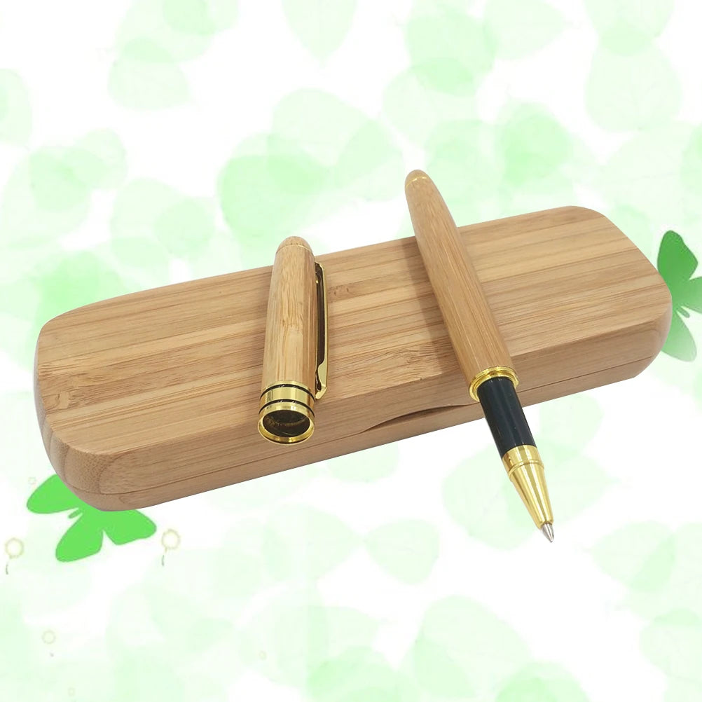 Bamboo Gel Pen with Gift Case Pen for Signature Calligraphy Birthday Father's Day Anniversary Gift